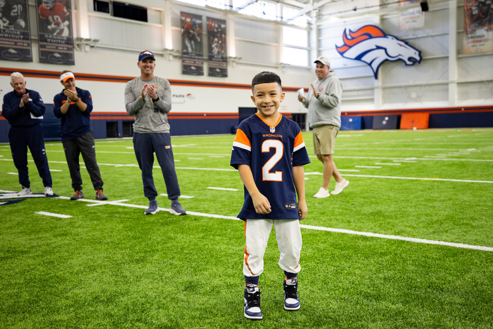 Elmer and his family have never been to a game in person, and his ultimate sports Dream is to “stand on the logo in the middle of the field like I’m part of the team” and see a game live at Empower Field at Mile High Stadium! We can’t wait to see Elmer do his Mile High Salute in realtime and at a game this Fall!