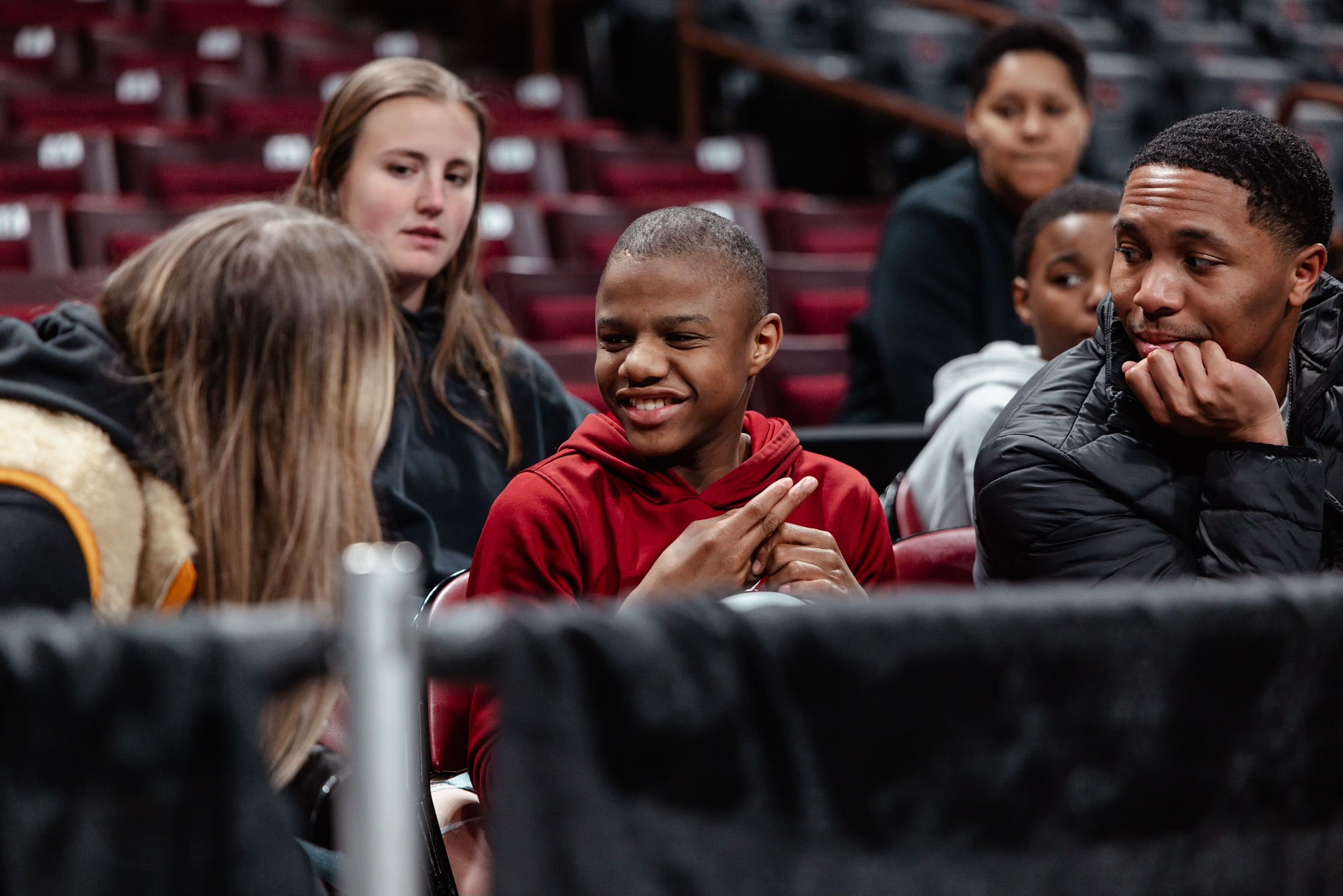 After an action-packed afternoon, we checked into our incredible hotel, The Graduate. Waiting in Gabe’s room was the ultimate surprise: all of his favorite snacks, drinks, and even his beloved Peppa Pig character. A little downtime later, we were back at the arena for an exclusive chalk talk with one of the women’s basketball coaches, who walked us through game strategies and key plays for the night’s matchup.