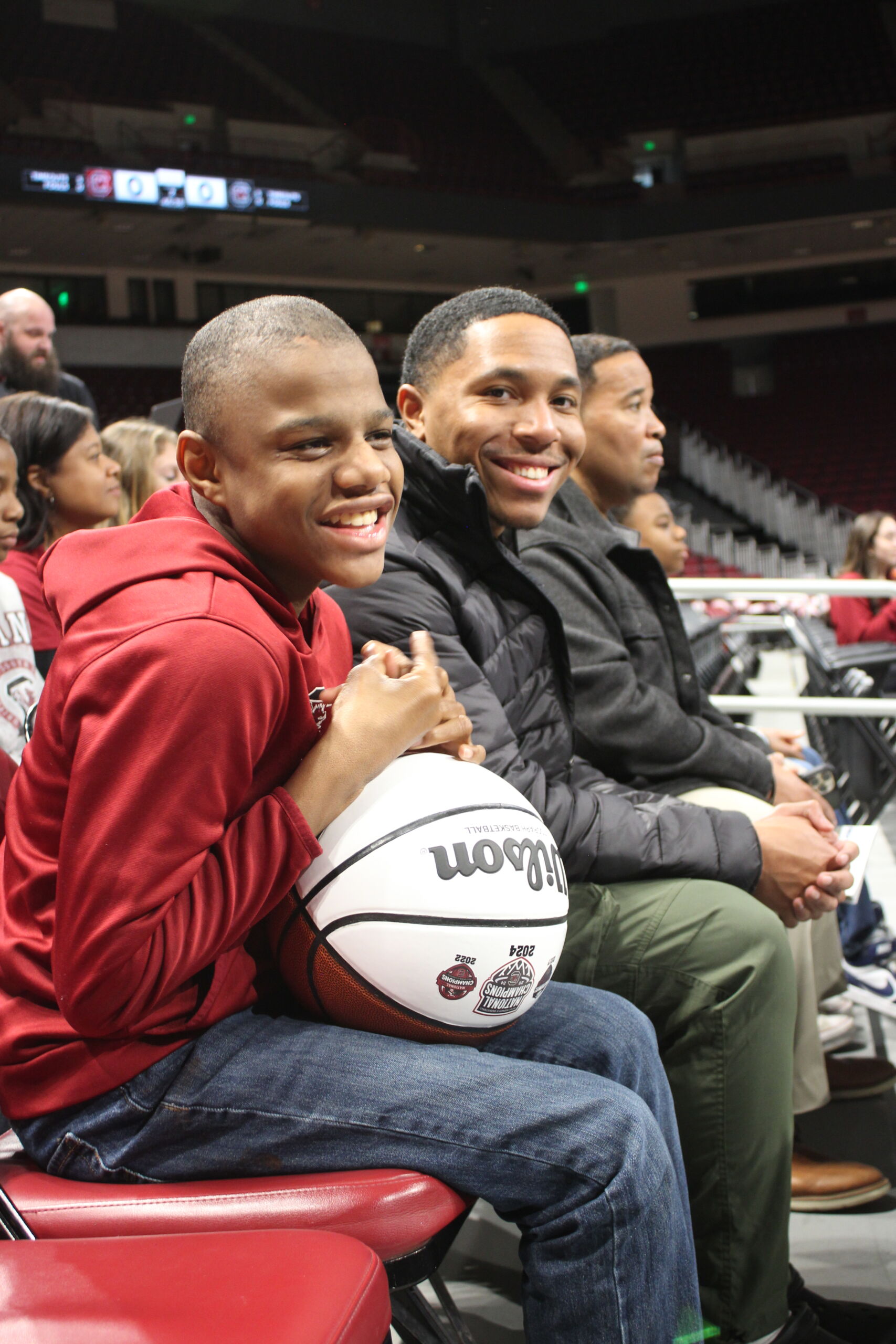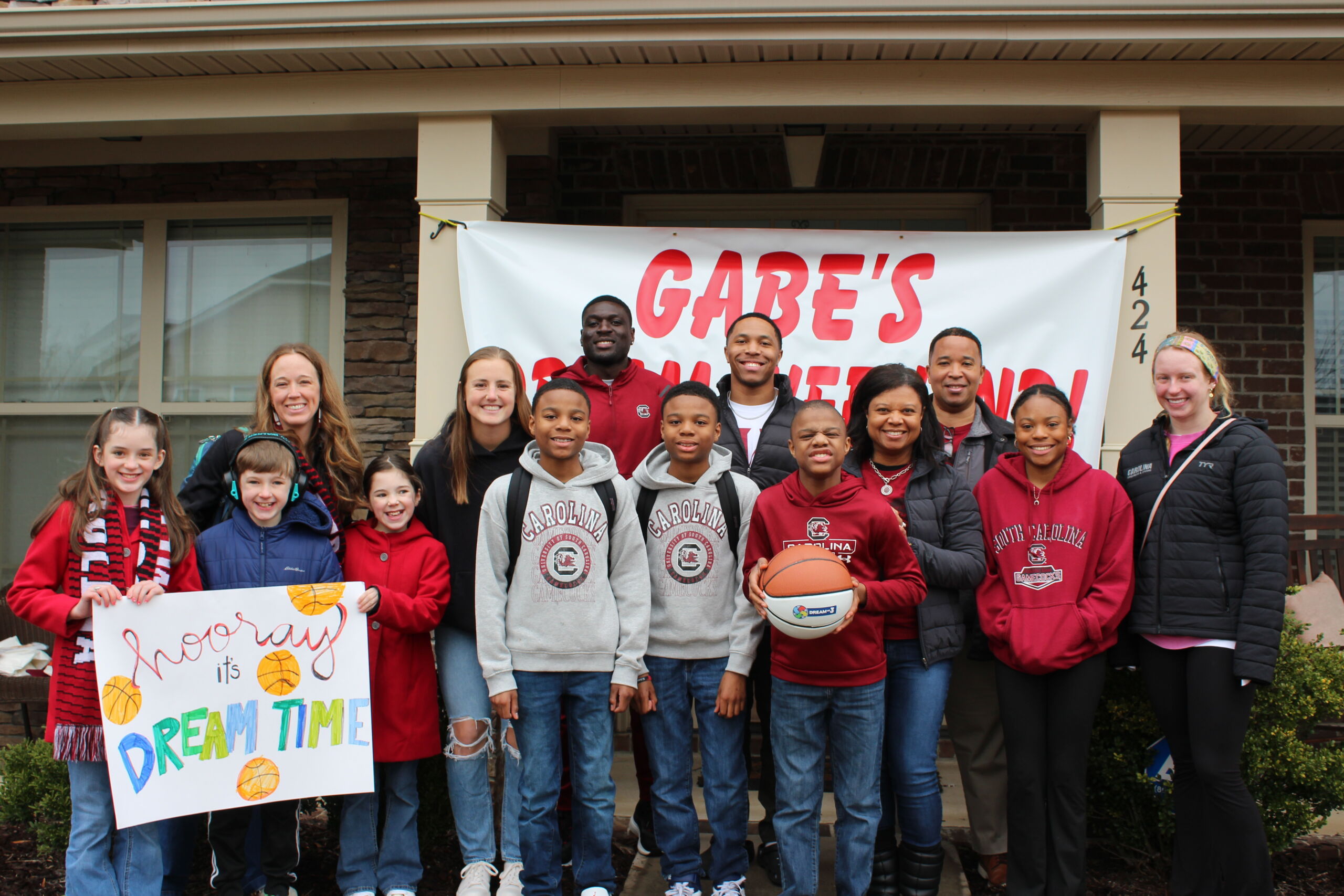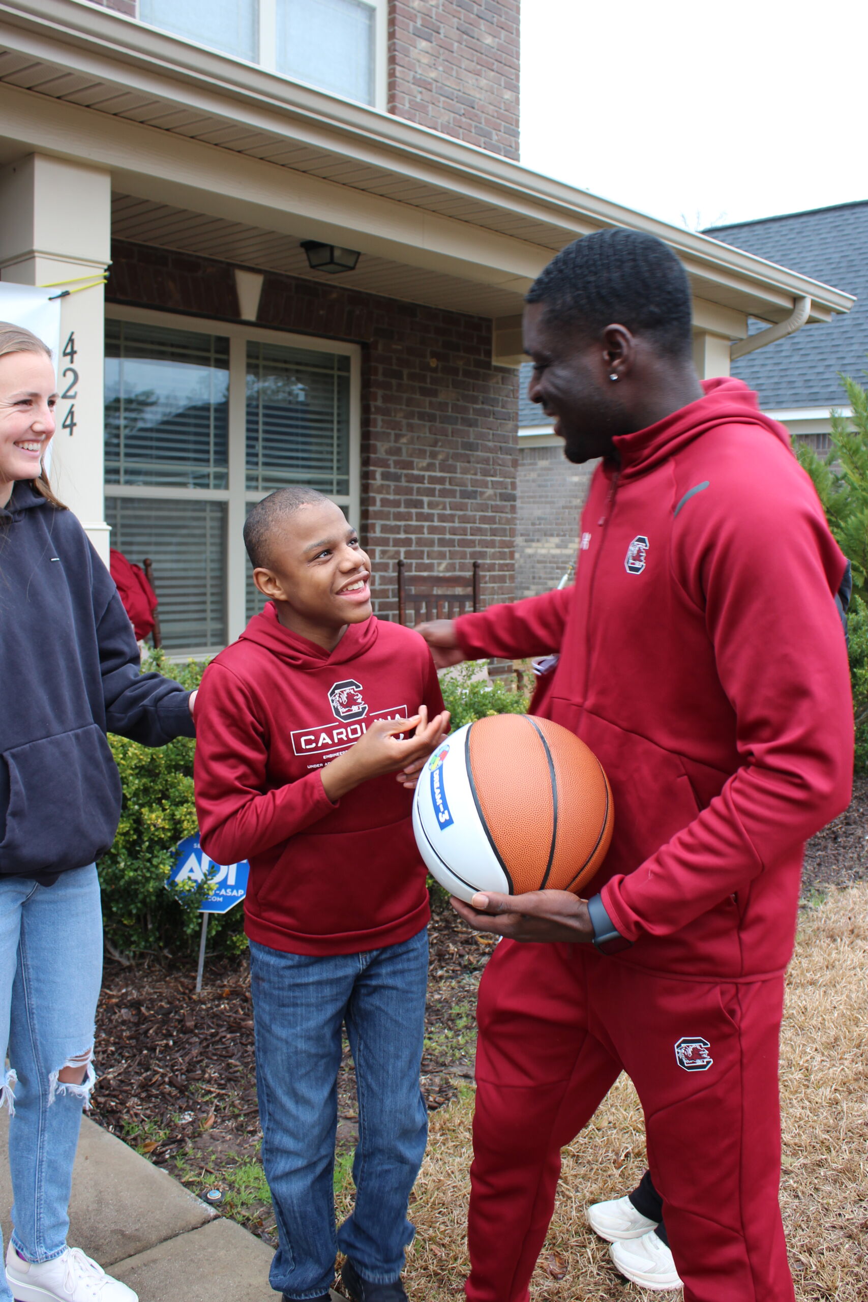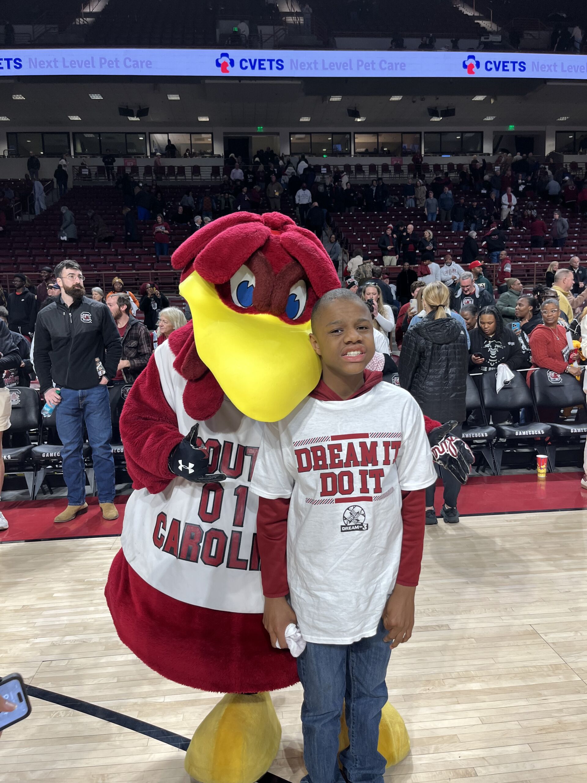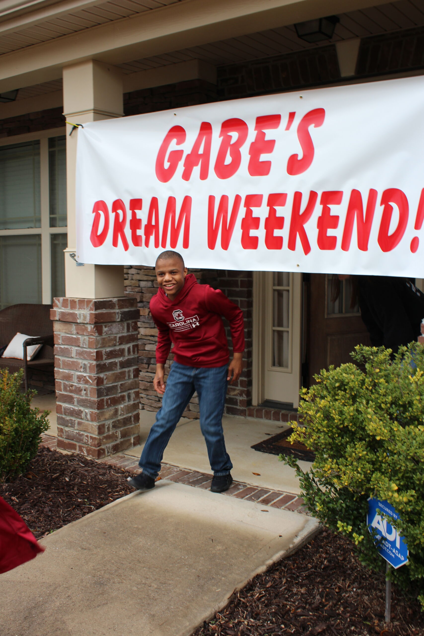Day one kicked off with a heartfelt send-off from Gabe’s house, where a few members of the South Carolina CDT as well as last years USC’s dream recipient, Rutledge, surprised him at his front door with a huge poster and an abundance of gifts. From there, the excitement only grew as the family rode in style in a Hummer limo, heading straight to Colonial Life Arena.