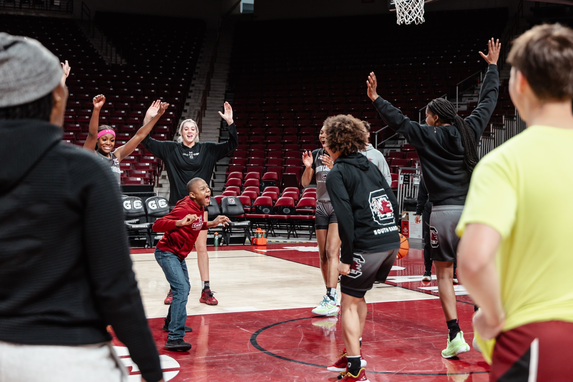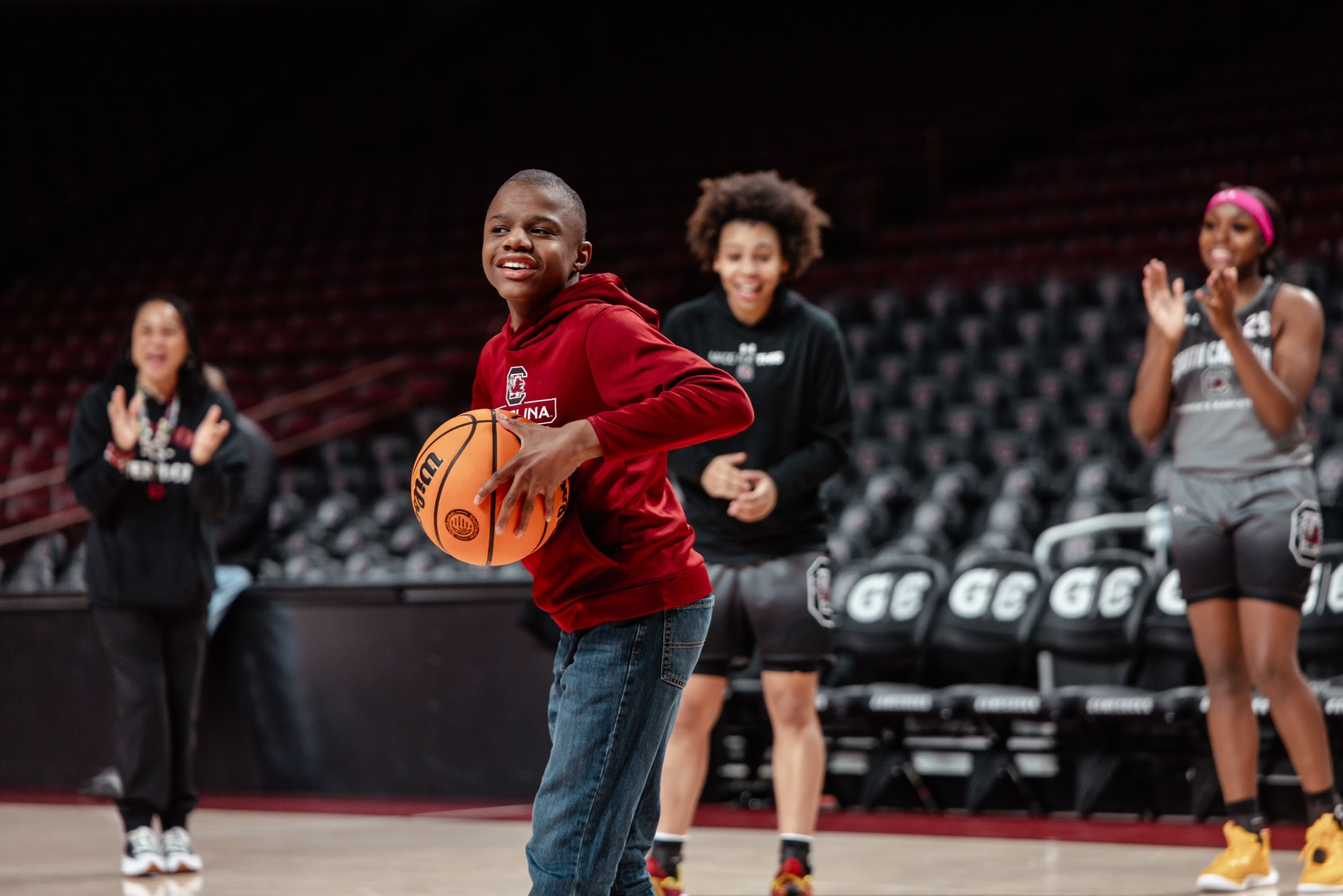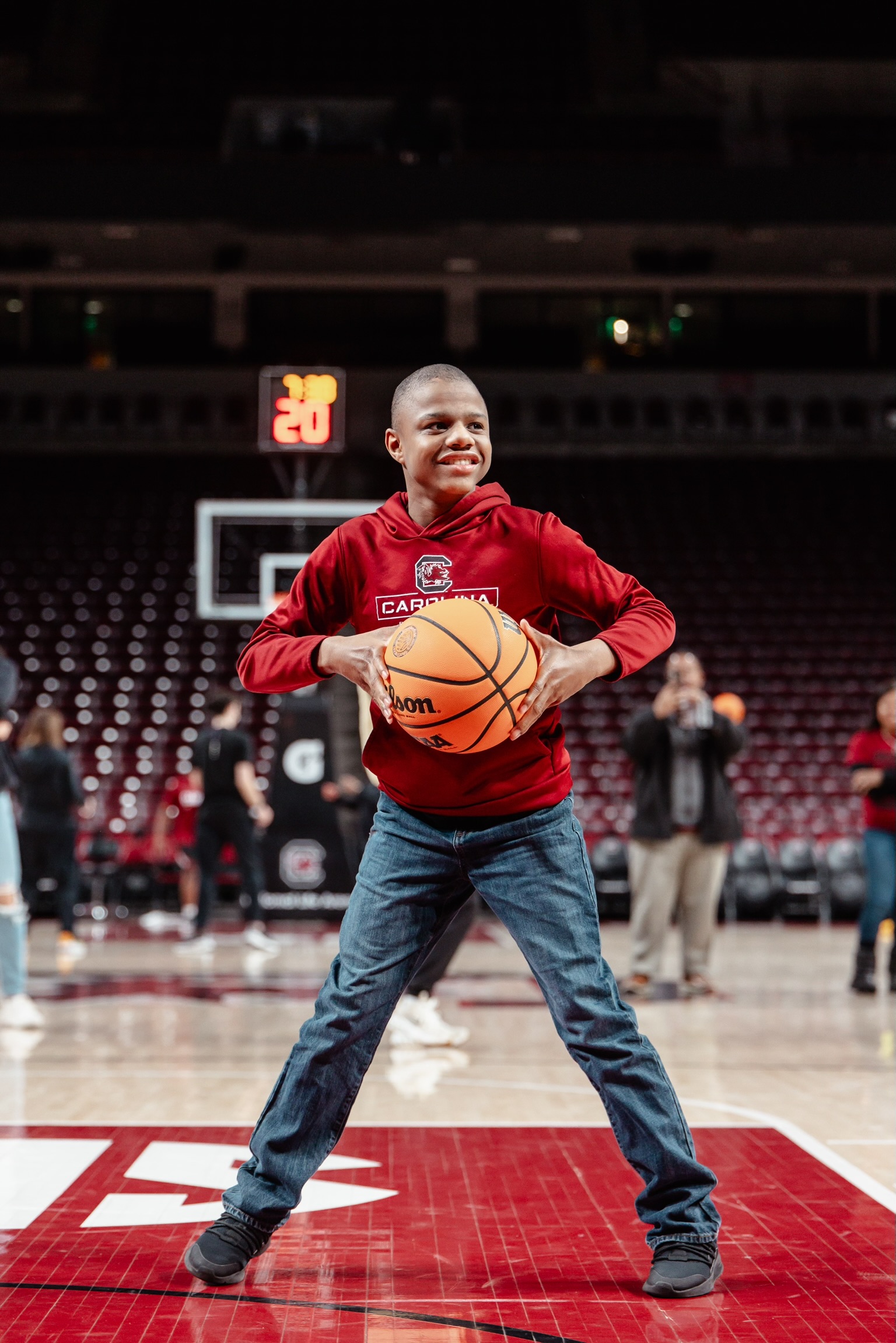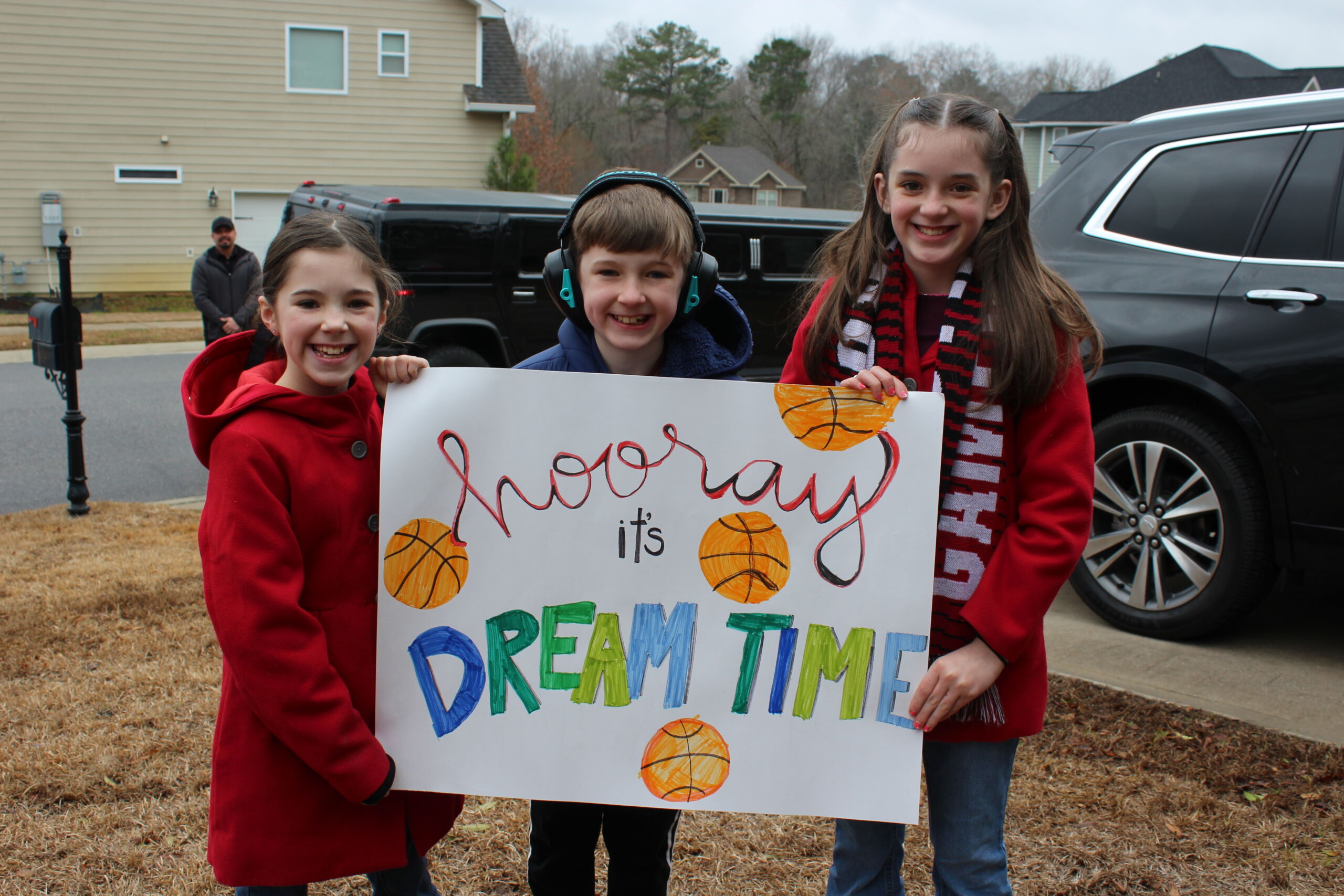 Day one kicked off with a heartfelt send-off from Gabe’s house, where a few members of the South Carolina CDT as well as last years USC’s dream recipient, Rutledge, surprised him at his front door with a huge poster and an abundance of gifts. From there, the excitement only grew as the family rode in style in a Hummer limo, heading straight to Colonial Life Arena.