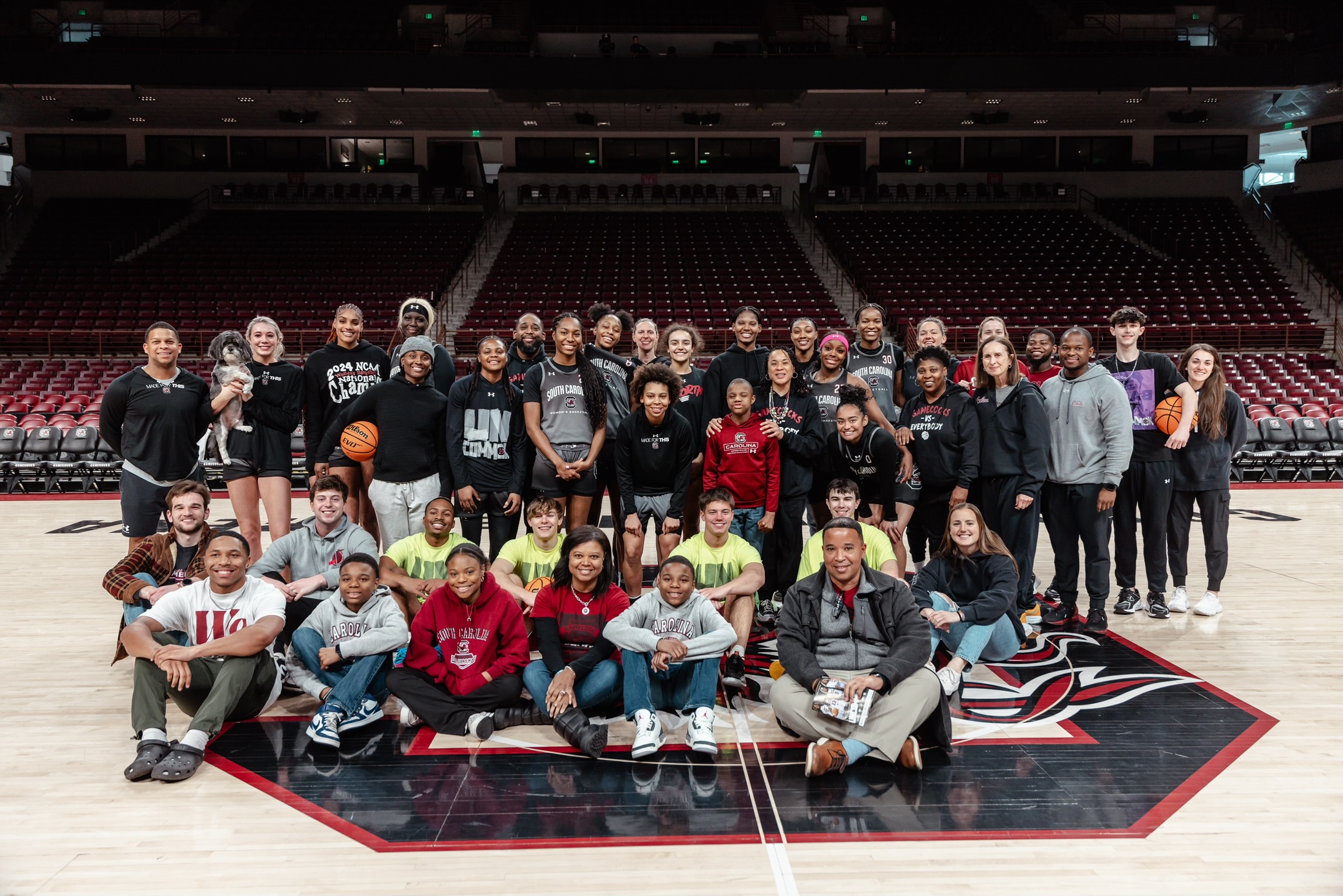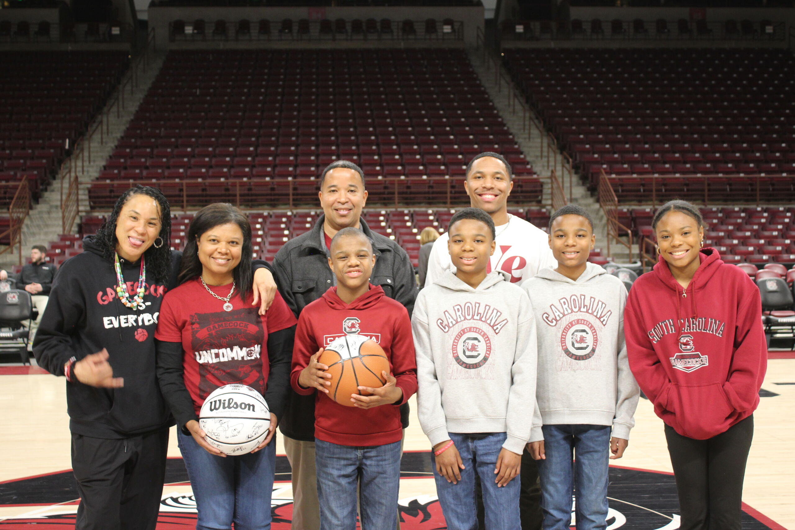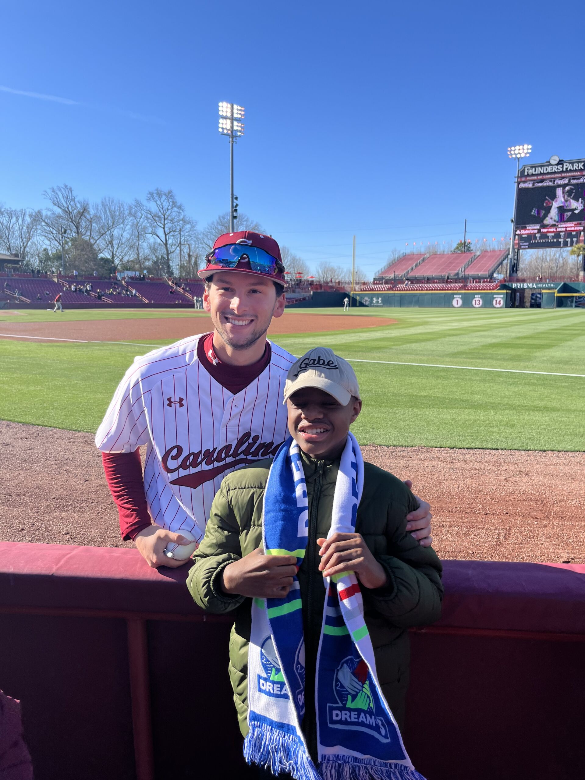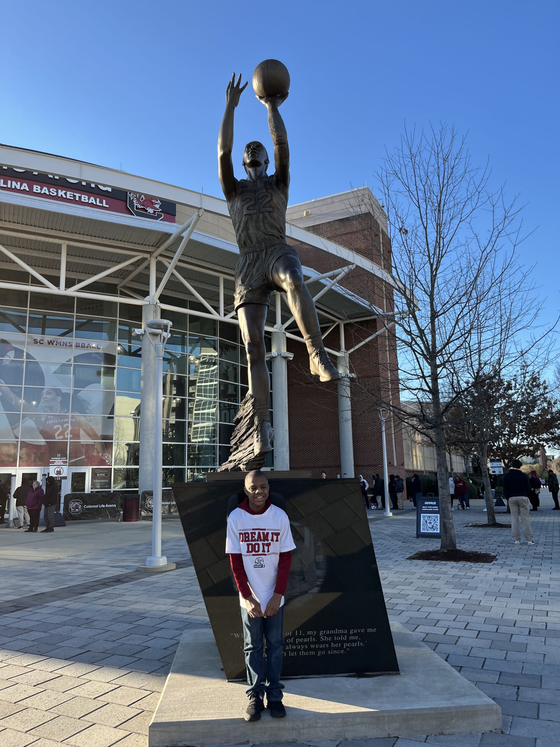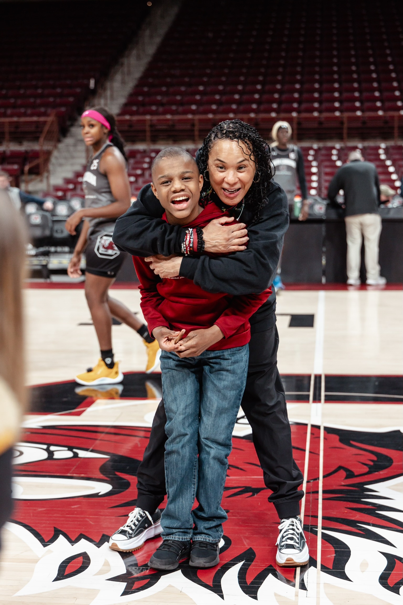 Day one kicked off with a heartfelt send-off from Gabe’s house, where a few members of the South Carolina CDT as well as last years USC’s dream recipient, Rutledge, surprised him at his front door with a huge poster and an abundance of gifts. From there, the excitement only grew as the family rode in style in a Hummer limo, heading straight to Colonial Life Arena.