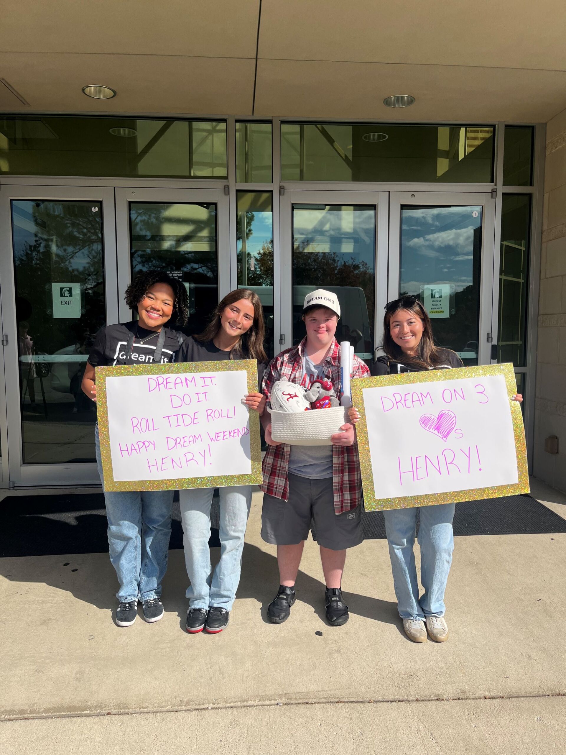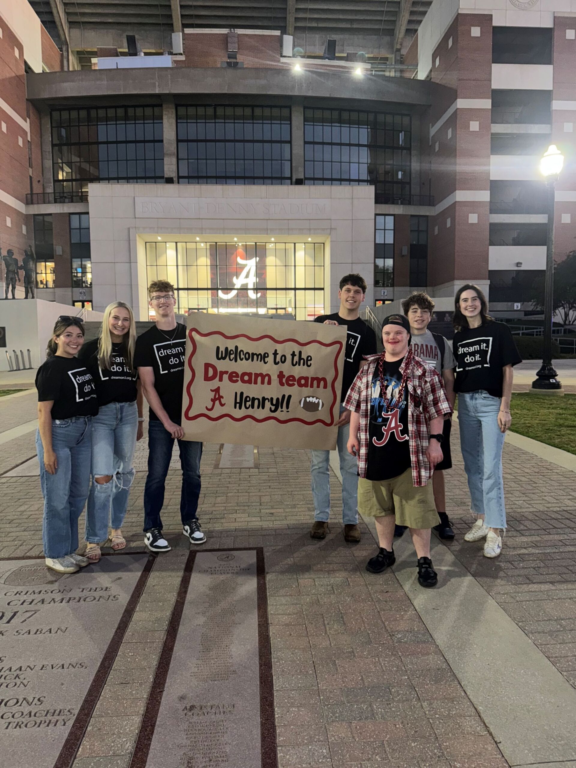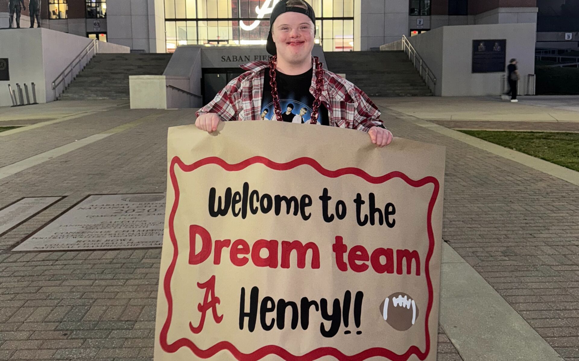 Henry’s Dream is to be part of the Alabama Football team. He dreams of riding the team bus, walking through the tunnel, suiting up in the locker room, and standing on the sidelines as their “hype coach”—getting the team pumped up before the big game. He’s also a huge fan of Big Al, Alabama’s mascot, and would be thrilled to meet him in person. For Henry, being on the field with the team he loves the most would be the ultimate celebration of everything he loves: sports, teamwork, connection, and joy.