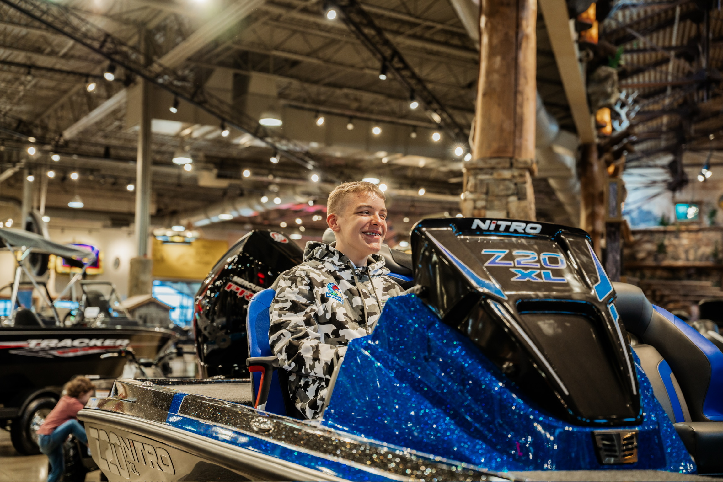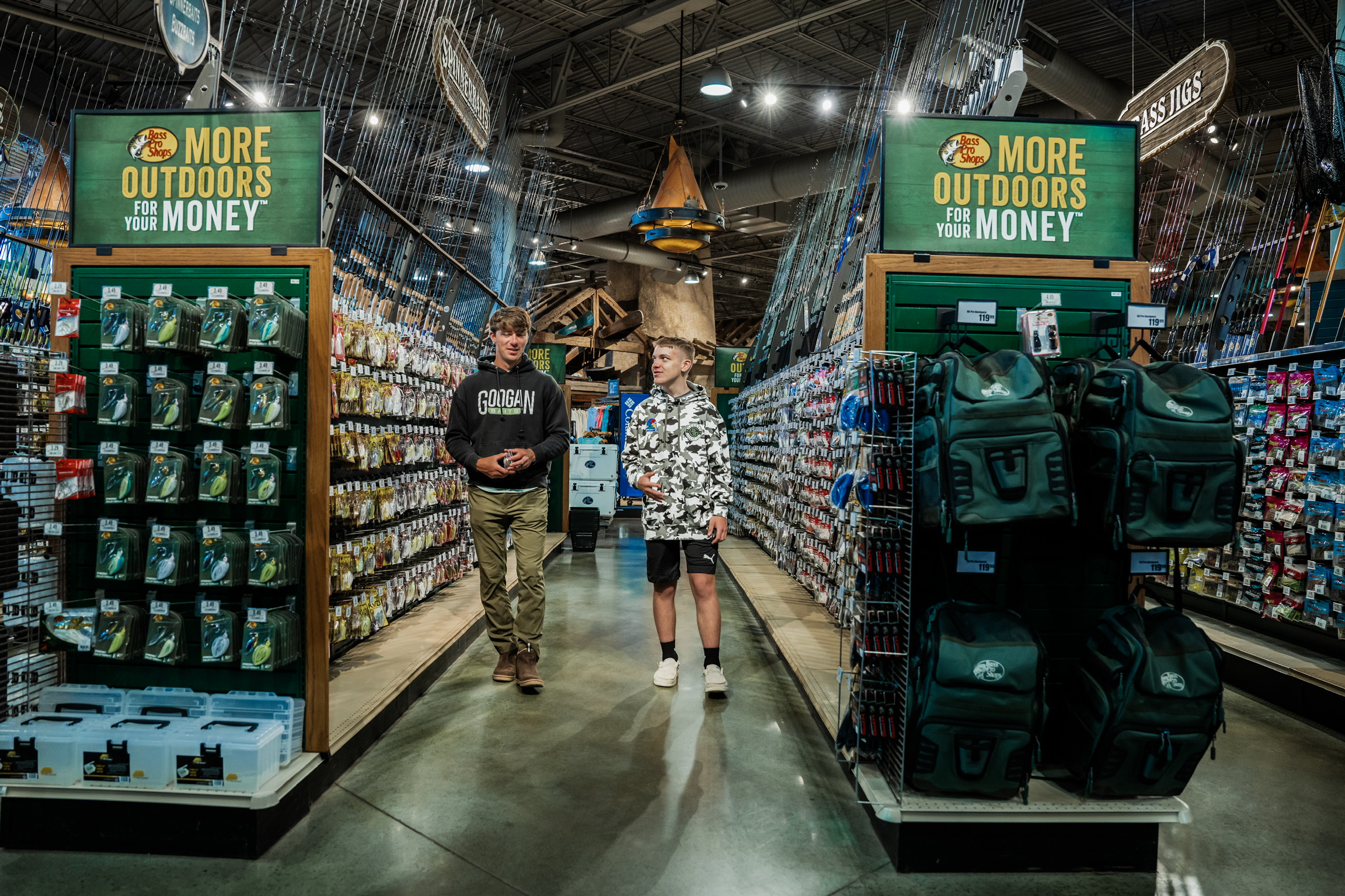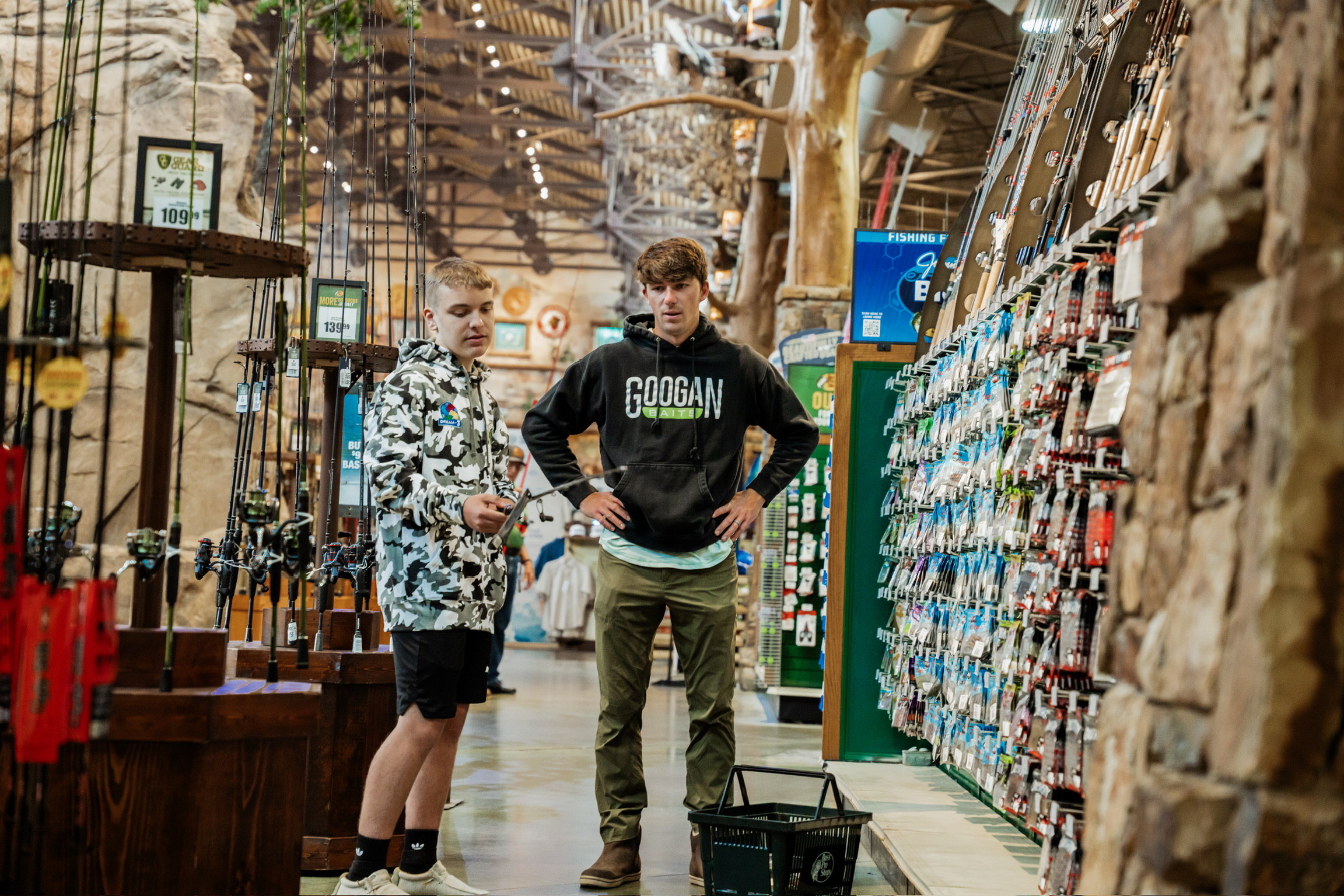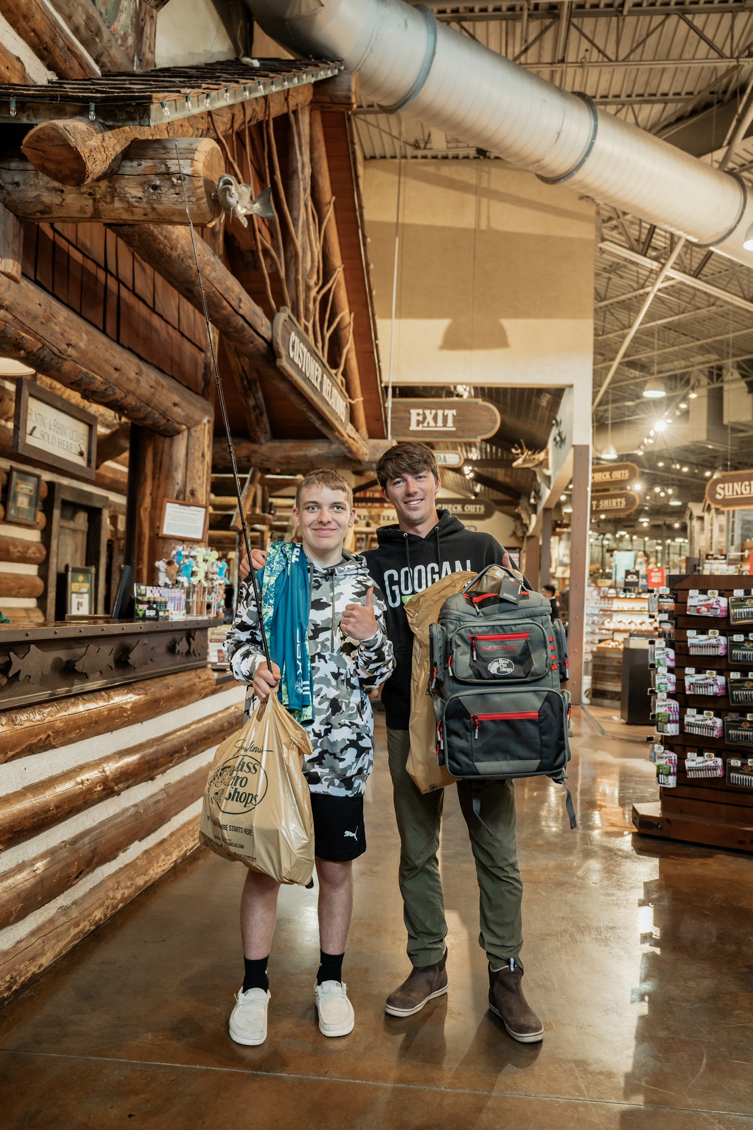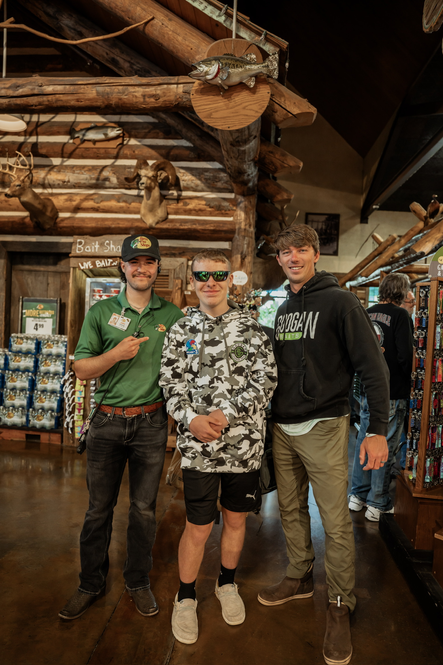 Josh got hooked up with a shopping cart full of fishing essentials—lures, jigs, baits, apparel, and even a pair of Costa sunglasses. But the absolute highlight of the day was the custom fishing combo Jon, Josh, and Jake (Bass Pro employee and master fisherman) picked out for Josh—a Zodias rod and Zillion SV reel, the perfect setup for his fishing dreams.
