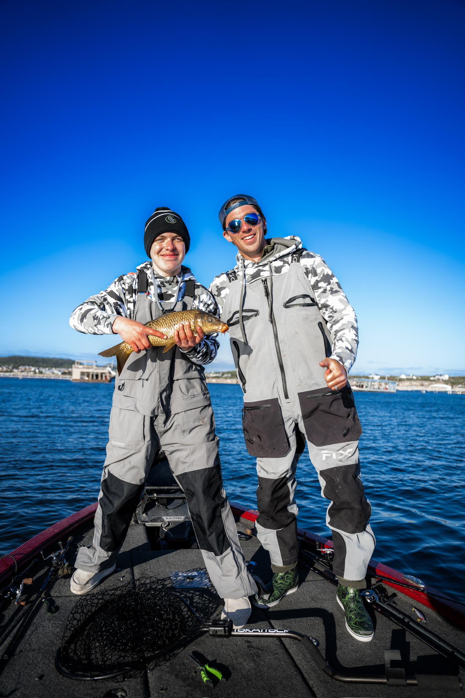The big day had arrived, and despite the cold and windy weather, Josh was more than ready to hit the water with Jon B. It was a full 12-hour day on the water—talk about an epic adventure! From lake to lake, Josh and Jon explored different spots, laughing, sharing stories, and, of course, catching fish. Josh even got behind the wheel of Jon’s bass boat.