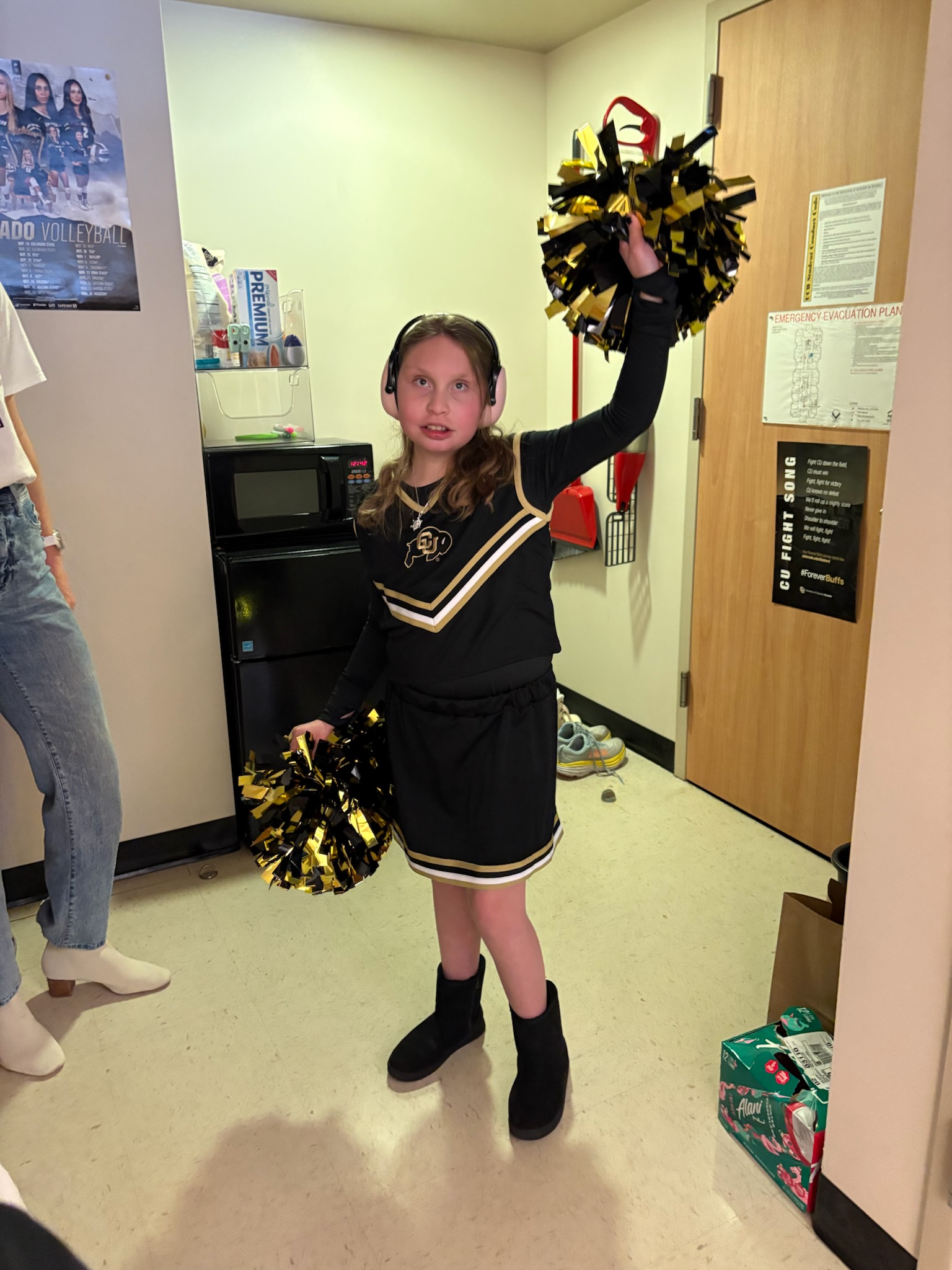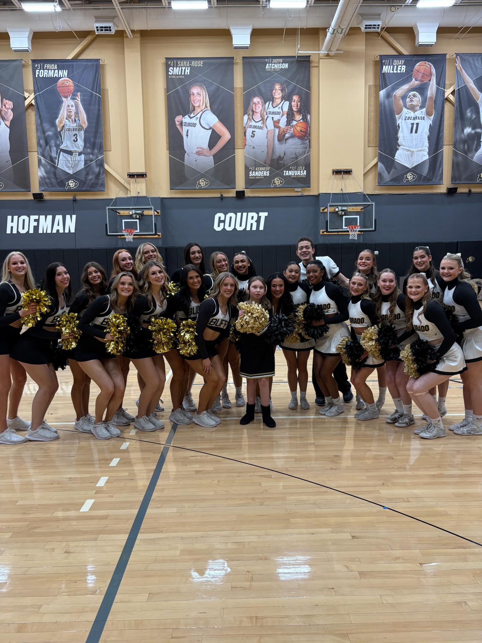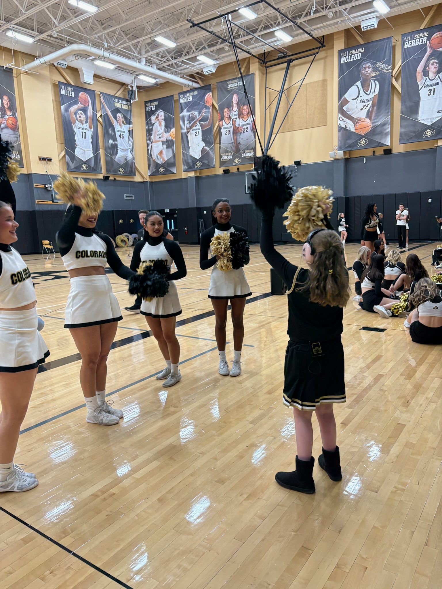 The magic continued as we made our way to the dorms where Kaylee prepared for her moment. She changed into her cheer uniform and got glammed up with makeup, each moment making her feel like a true star. Finally, we arrived at the event center, where Kaylee was given a special entrance to meet the Boulder cheer team. The energy was electric as she stepped in, leading cheers, connecting with each team member, and sitting down with them, surrounded by her cheer idols, as they learned more about our amazing Dreamer.