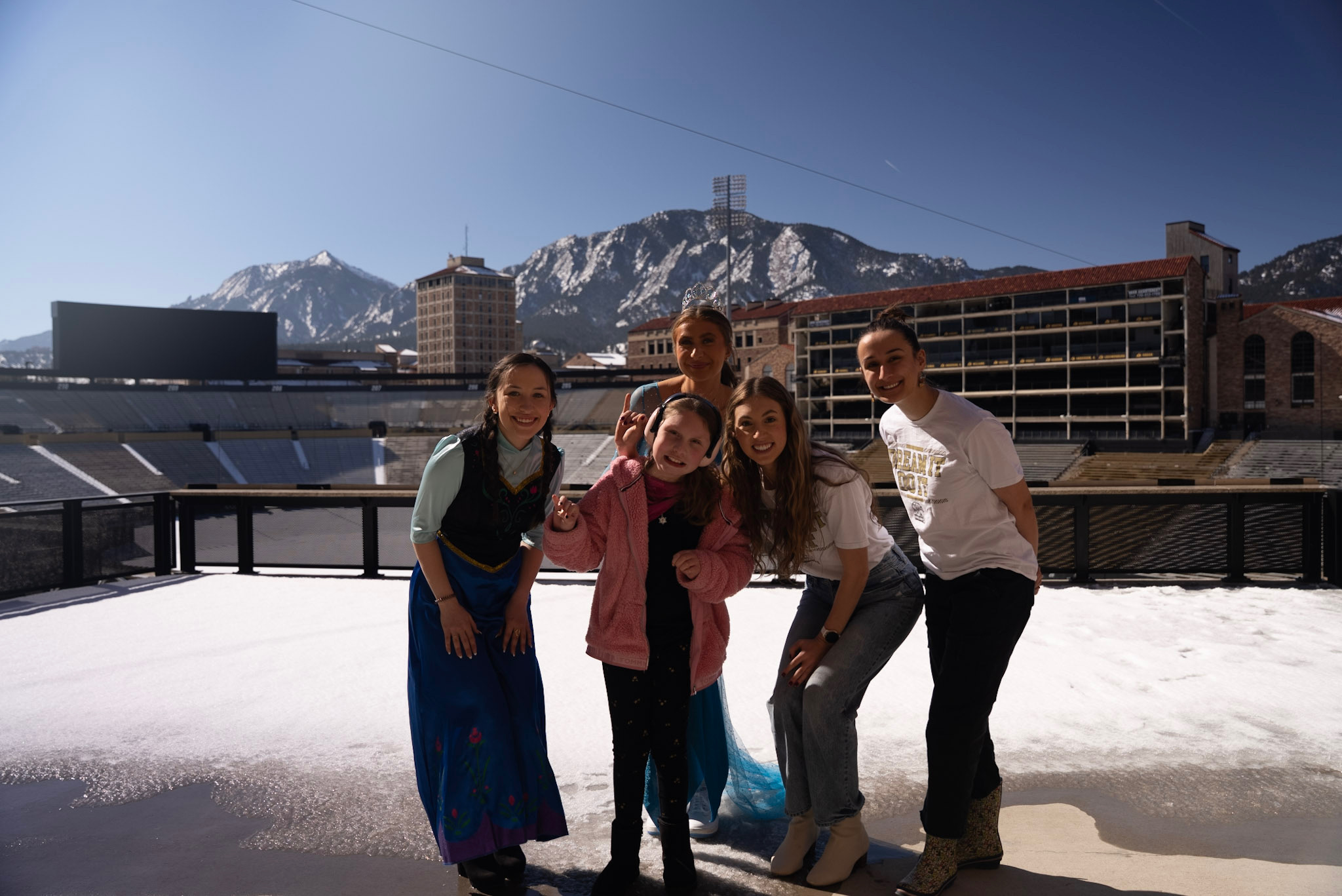 Upon arriving in Boulder, the dream truly began. We toured the state-of-the-art football facilities, each step bringing Kaylee closer to her cheer experience. The group had lunch with the most breathtaking view of the mountains, and the awe-inspiring landscape from the football stadium left everyone smiling. Afterward, Kaylee and her family enjoyed a special shopping spree at the Boulder team store, surrounded by the excitement of choosing all her favorite gear.