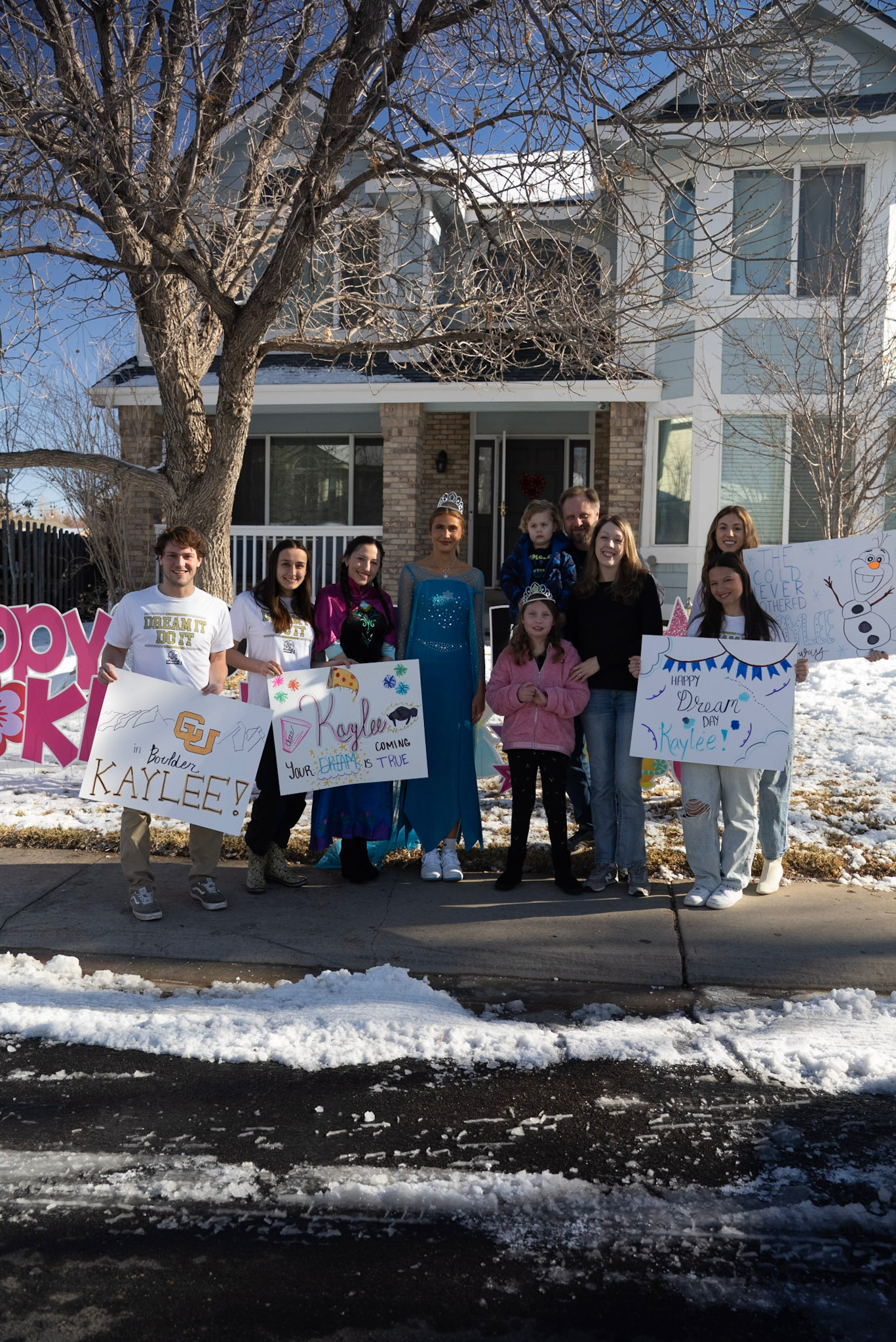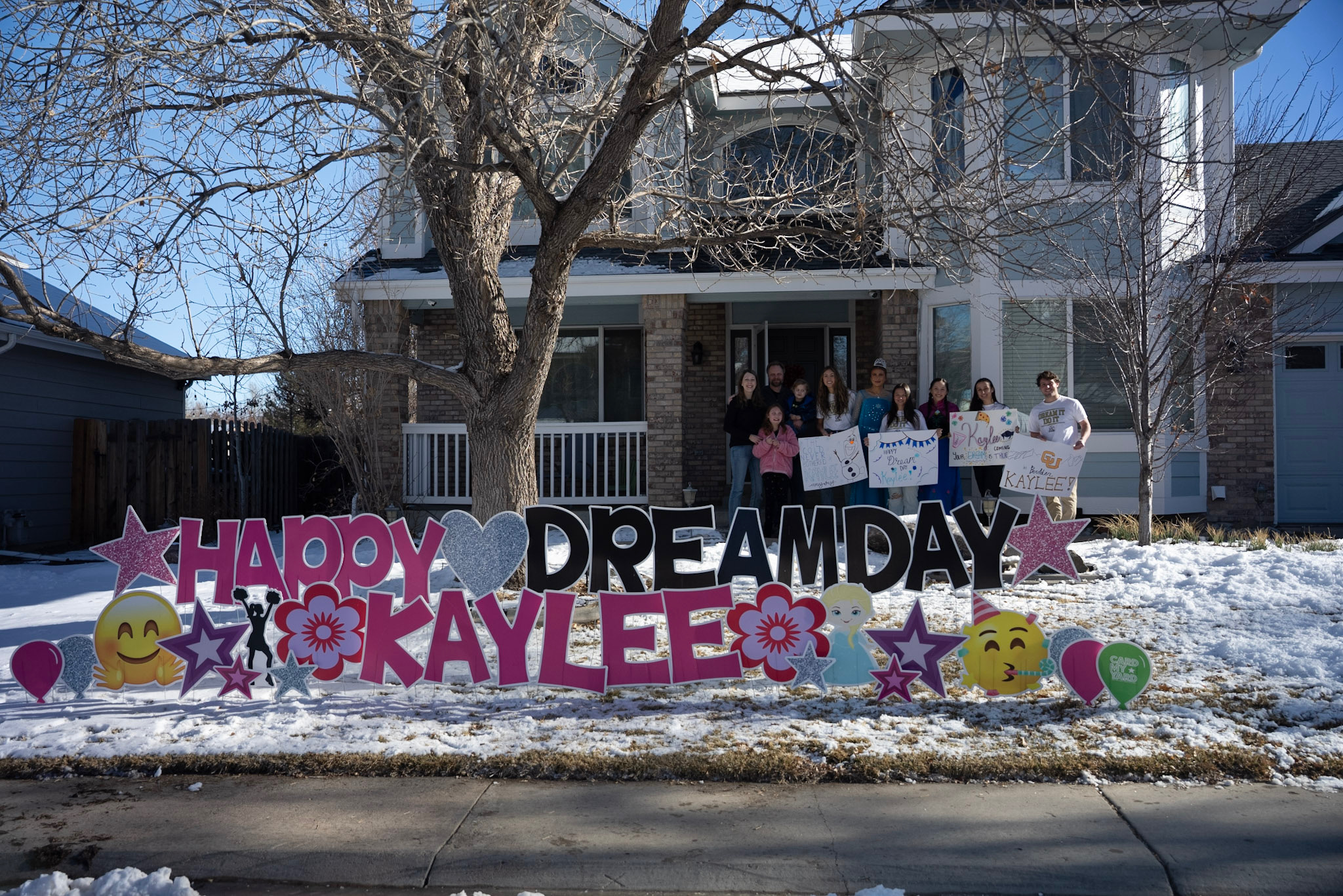 Day two started with even more surprises. Kaylee woke up to find a beautiful yard sign showcasing her favorite characters, but the best surprise was yet to come. As she stepped outside, none other than Elsa herself appeared from the limo, sending Kaylee into a world of wonder! The excitement and magic continued as the family danced and sang their way through the limo ride to Boulder, filled with anticipation for what was to come.