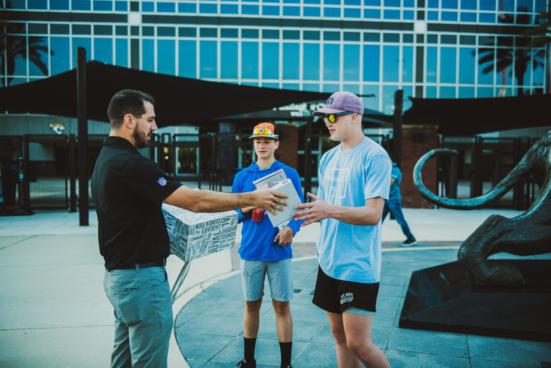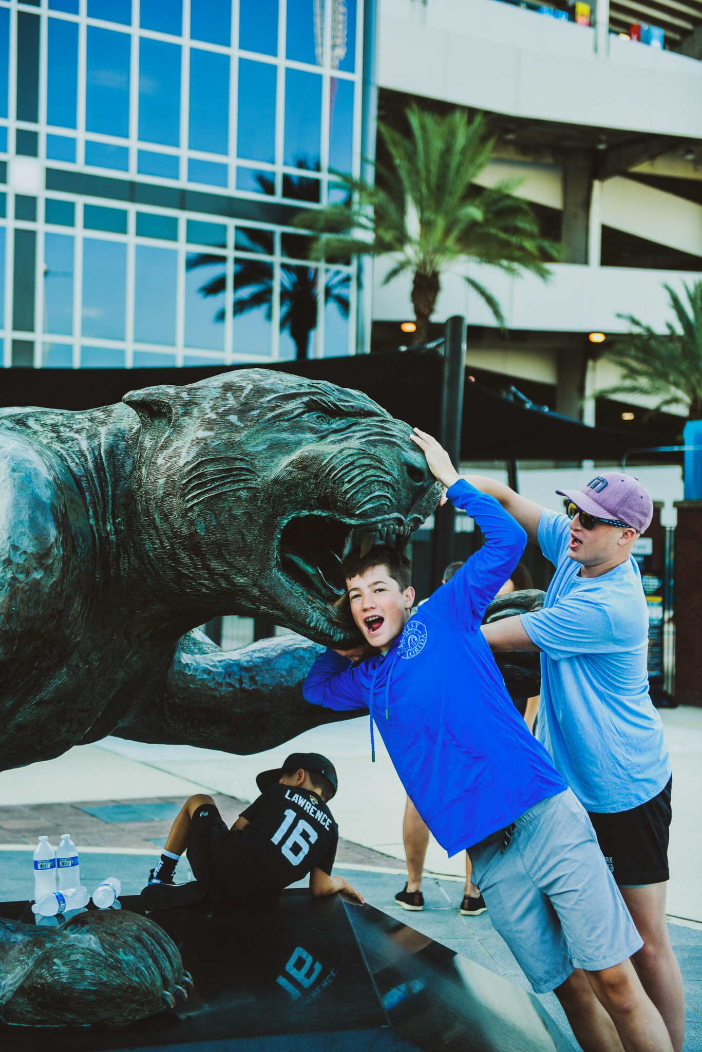 On Monday, Luke and the crew enjoyed time at the Jacksonville Jaguars training camp! Upon arrival at camp, the group was warmly greeted with all kinds of Jags goodies before heading to watch practice. After practice, Luke and Noah were able to get autographs from all of the wide receivers and Luke decided that he wanted to pass along his Dream Mojo to someone else. When leaving the stadium, there were people hoping to get autographs from players, and Luke gave his autographed ball to a little girl in line. The only person more excited than she was, was Luke! To say we love this kid and his heart is an understatement.