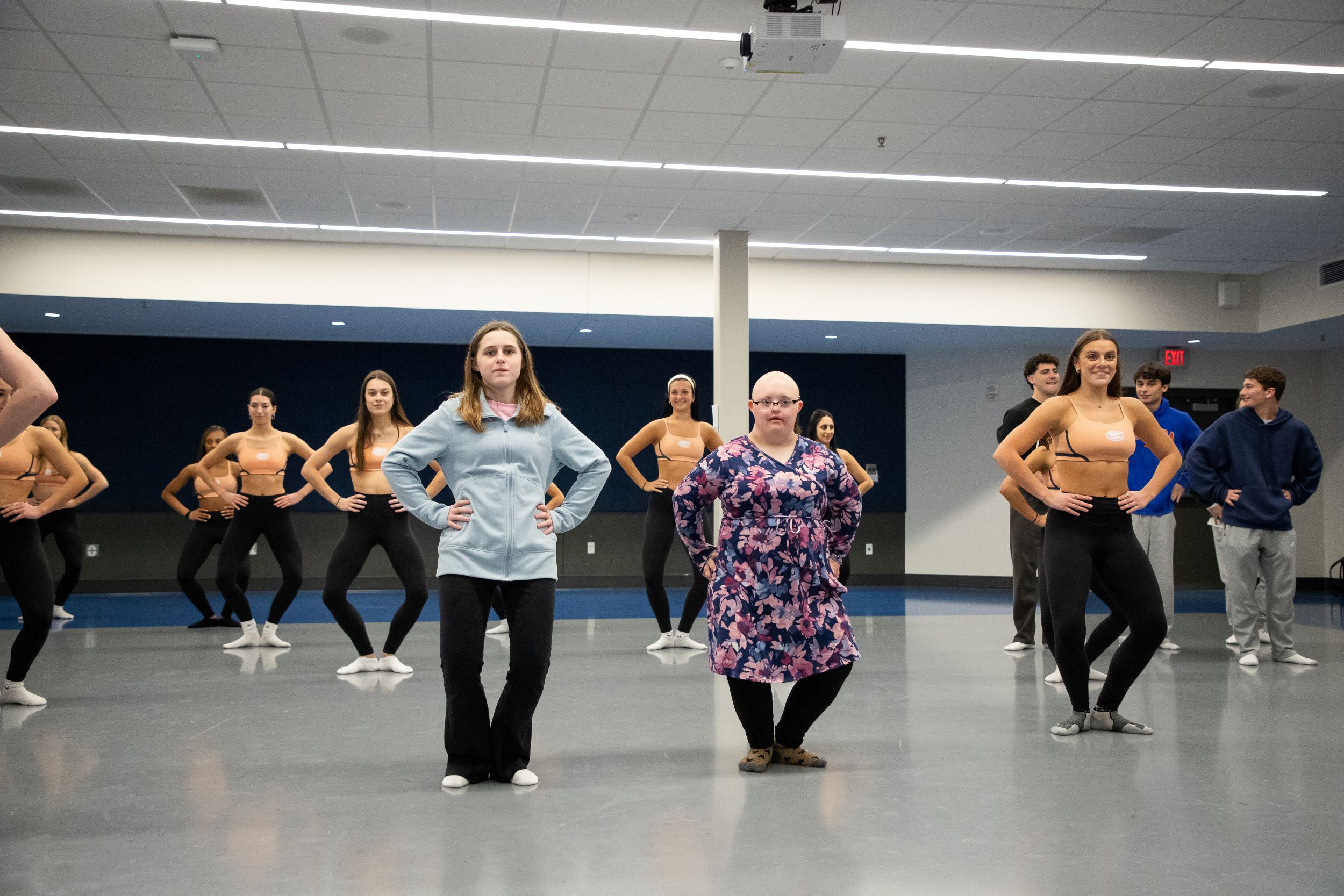 From there, the team gathered for dinner at The Cheesecake Factory before heading to Dazzlers practice. Sophie and her sister, Felicity, jumped right into calisthenics alongside the team. The captains and even a few of the guys joined in, filling the room with laughter and making Sophie feel instantly included. The Dazzlers went above and beyond, gifting Sophie a stunning sequin dress, sweet treats, and spending time making bracelets together. They walked her onto the basketball court, took countless photos, and made sure she felt celebrated every step of the way. The hospitality and genuine care shown to Sophie and her family were truly unmatched.